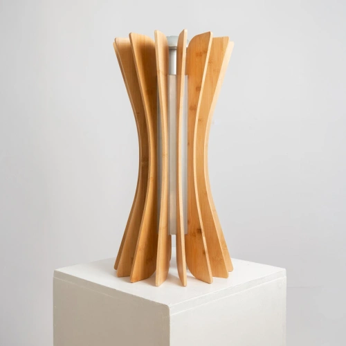 Albero is designed for domestic use, ideal for placement on consoles and desks to ensure clean and safe air where it matters most. Its radial fin structure is made from Paulownia wood, a sustainable material chosen for its strength, lightness, and unique ability to absorb up to ten times more CO₂ than common trees. The innovative honeycomb geometry of the filtration system maximises the surface area exposed to ions, allowing faster and more efficient air purification.
